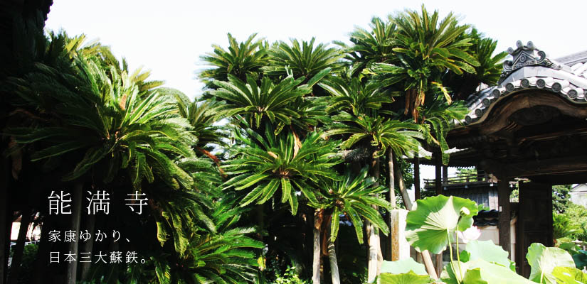 本堂前にある蘇鉄は、長徳元(995)年頃、安倍晴明が中国から持ち帰り、植えたものとされます。高さは約6m、幹の太さは約5mにも達し、日本三大蘇鉄に数えられています(あとのふたつは大阪府堺市の妙国寺と、静岡市清水区の龍華寺)。