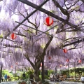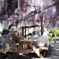 例年4月中旬から下旬にかけて見頃を迎える長藤は、昭和42(1967)年に牧之原市(当時榛原町)の東光寺より“小指大のひと芽”を譲り受け、境内にあった山藤に接ぎ木したもの。東光寺の藤は大正初期に国指定天然記念物「熊野の長藤」を受け継いだものとされるため、いわば孫にあたります。