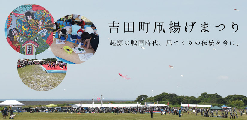 会場は、県営吉田公園西側の大きな広場。地元、吉田町凧の会をはじめ、県内の凧保存会によるさまざまな凧、めずらしい凧が大空高く揚げられるほか、誰でも無料で参加できる凧づくり教室、特産品がもらえる抽選会などのイベントが行われます。