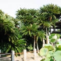 本堂前にある蘇鉄は、長徳元(995)年頃、安倍晴明が中国から持ち帰り、植えたものとされます。高さは約6m、幹の太さは約5mにも達し、日本三大蘇鉄に数えられています(あとのふたつは大阪府堺市の妙国寺と、静岡市清水区の龍華寺)。