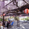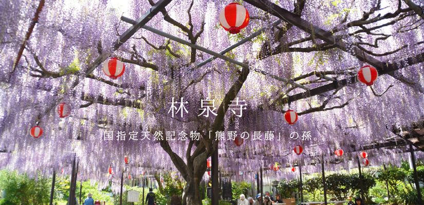 例年4月中旬から下旬にかけて見頃を迎える長藤は、昭和42(1967)年に牧之原市(当時榛原町)の東光寺より“小指大のひと芽”を譲り受け、境内にあった山藤に接ぎ木したもの。東光寺の藤は大正初期に国指定天然記念物「熊野の長藤」を受け継いだものとされるため、いわば孫にあたります。