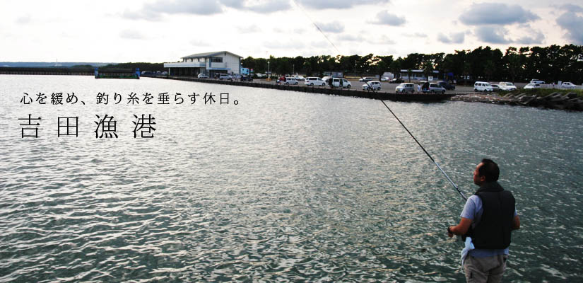 また吉田漁港は釣りのポイントとしても有名で、シーズンには多くの釣り客でにぎわいます。晩ごはんのおかずを狙うもよし、忙しい日常を忘れ釣り糸を垂らすもよし。休日にこころをゆるっとさせるのに、ちょうどいい場所だと思います。