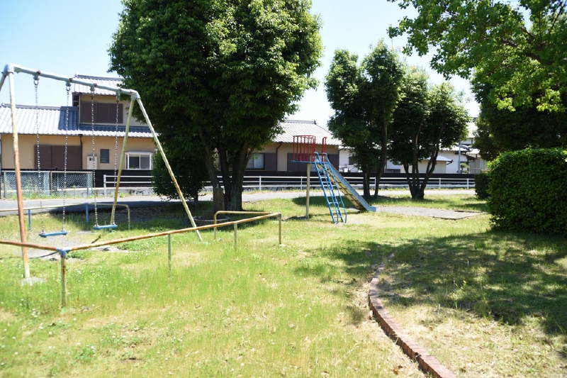 住宅街の一角にある、小さな公園です。その立地とサイズから、近所の子どもたち以外の利用はほとんどないと思いますが、滑り台、ブランコ、鉄棒の定番遊具がそろう上、木立や池があり、多様な過ごし方が提供されます。