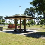 川尻神社からまっすぐ海に下った場所にある、おやすみさんと呼ばれる公園です。小さな公園ですし、町のサイトに書かれている「海賊船」も、正直いってかなり傷みが目立ち、遊具としての機能のほとんどが失われています。したがって、わざわざ足を運んでいただくという場所ではないように思います。