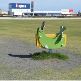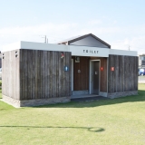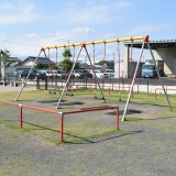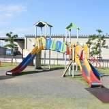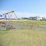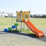 災害時は68棟の仮設住宅用地となり、炊出しに利用できるベンチやトイレになるマンホールなどの防災機能を備えているために、規模と新しさのわりに遊具のサイズや多様さは控え目ですが、芝生を元気に走りまわるキッズには、まったく関係なし! 隣接するスーパーや薬局でママがお買い物のあいだ、パパと一緒に待っているのにもピッタリです。